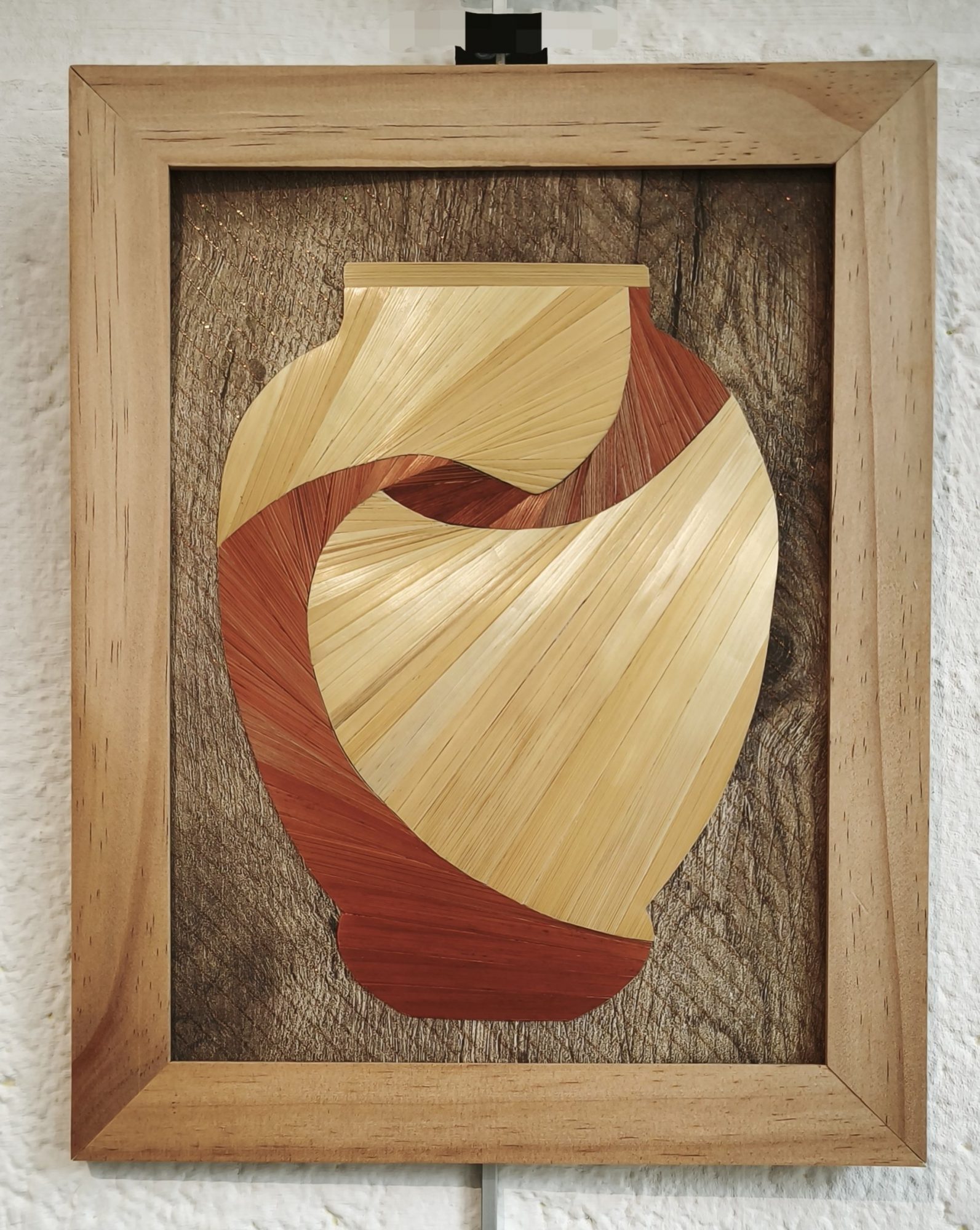 Paille de seigle sur papier, encadrement bois brut.